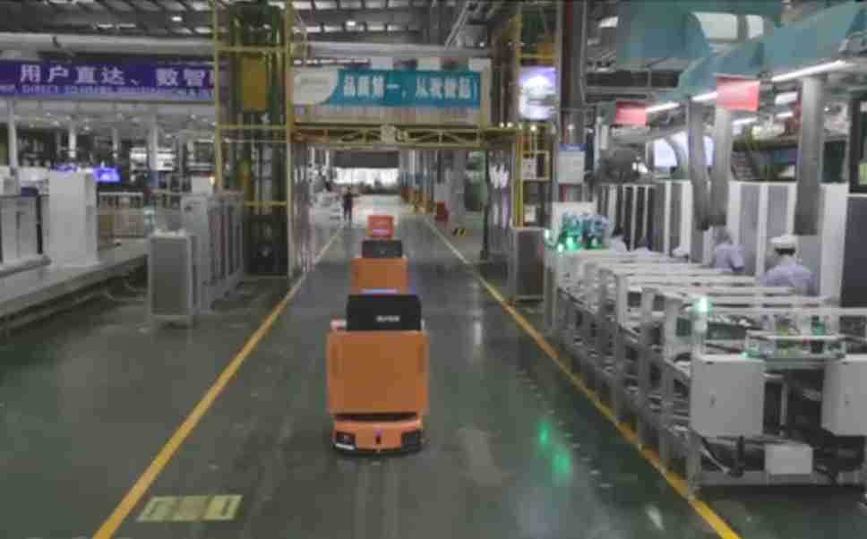 为车载冰箱物流配送打造的智能解决方案,,,,包含产中物流通过潜伏举升AMR搬运至线边,,,产后成品物流智能仓储,,流程包含产中物流智能齐套入库,,,线边安灯叫料AMR智能配送至线边,,成品入库、、、出库,,,通过无人堆高车机器人,,,,智能仓储管理替代人工作业管理,,,实现更高存储、、、、更高效率、、、更具柔性化的解决方案。。